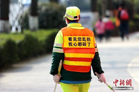 你没看错,他们身穿的反光背心印有的确实是“看见您乱扔,我心都碎了”、“您在车窗扔垃圾,我在路边干着急”、“抽刀断水水更流,乱扔垃圾愁更愁”这样的“萌语”。这样的工作服定做不仅让忙绿的城市变得趣味许多,更重要的是还可以提醒民众增强环保意识、不乱扔垃圾,保护我们共同的环境。